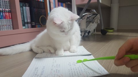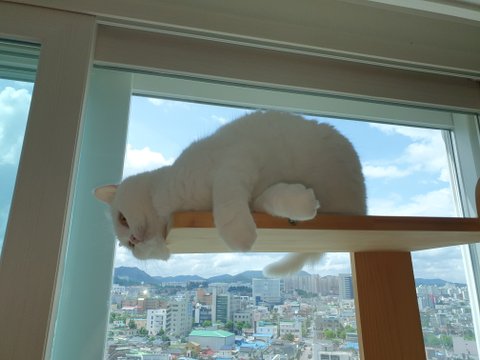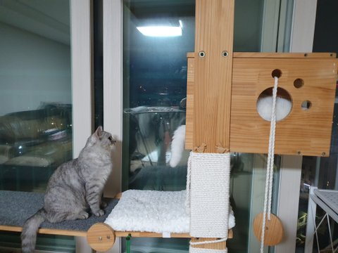 캣타워에서 절대로 안 내려오고 고집 피울때도 있어요...