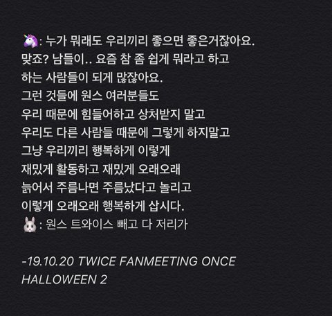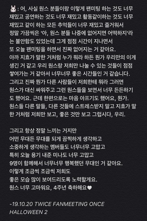 팬들이랑 가수간에 서로 엄청 믿는것같음 지효 열애설 났을 때 반응도 그렇고... 팬들이 계속 옆에 있어줄걸 아니까 저런 이벤트도 해줄 수 있는 거겠지 저런 관계성이 부럽다