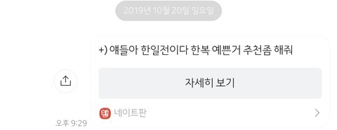 예전에 한복 추천해달라는 글 있어서 후기 궁금해가지고 카톡에 공유해놨었단말야 근데 그거 지금 일본만세로 바뀜...