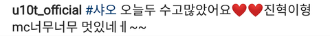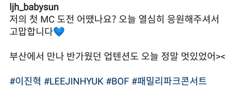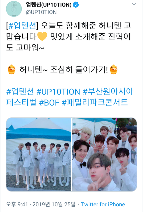 부산 원아페에서 진혁이는 mc로, 업텐션은 출연진으로 만난 뒤 올라온 사진들