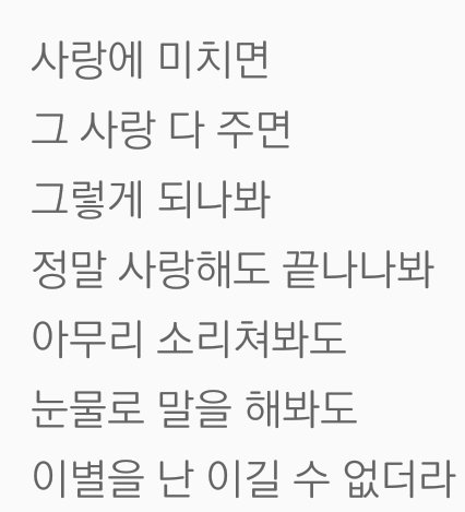 이제 한달 지남 한번도 안잡아준 그사람이 너무나 미웠음 하지만 나는 나를 사랑하지 않는 사람을 놓친거지만 그사람은 자기자신을 사랑해..