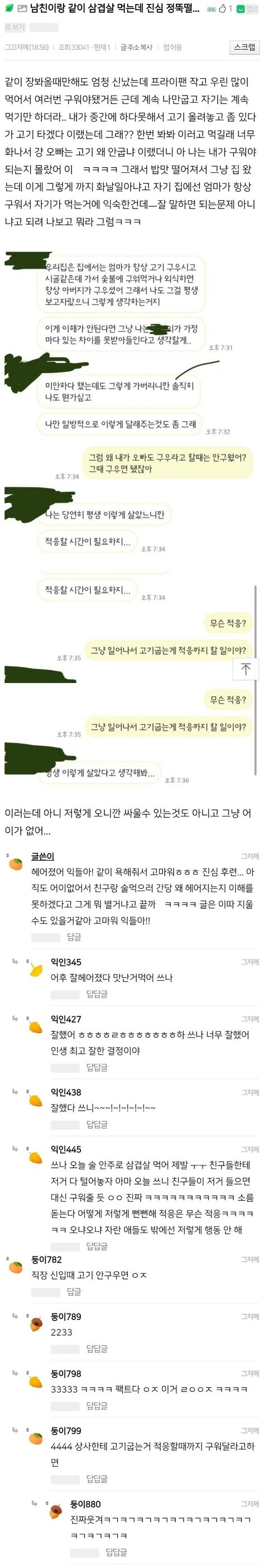 남친이랑 삼겹살 먹다 헤어진 여자