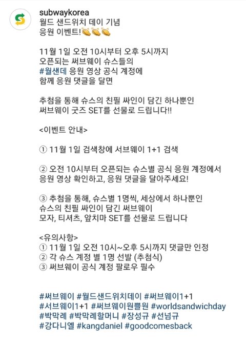 [써브웨이] 강다니엘 친필 싸인 굿즈받을랩?