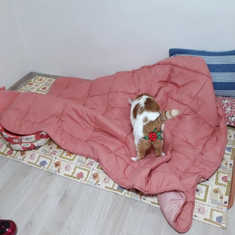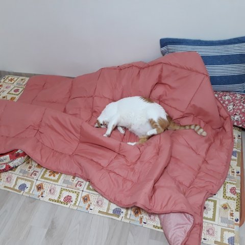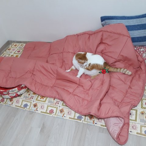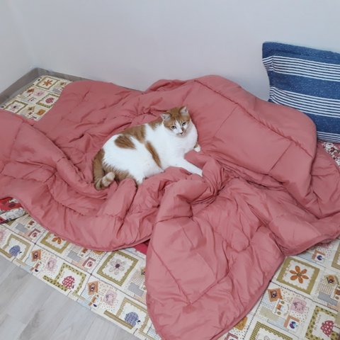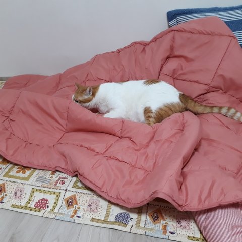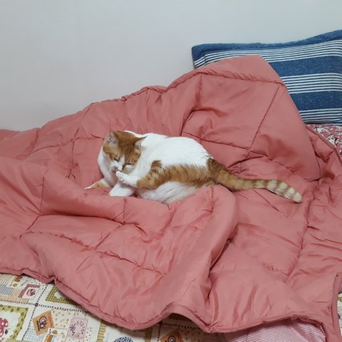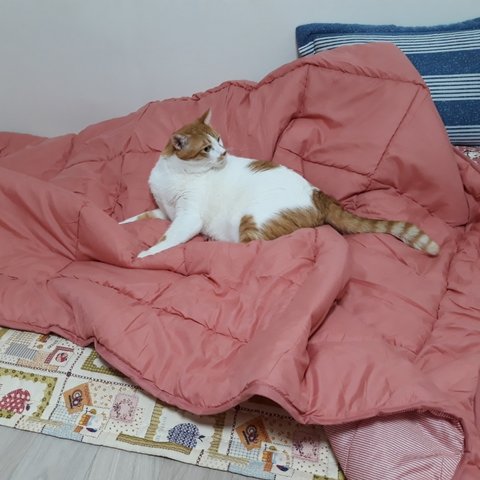 집사가 겨울에 덮을 이불을 사왔음.