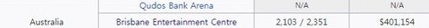 브리즈번엔터테인먼트센트레 - 2,351석 풀고 2,103석 채움 (원래 13,000석)