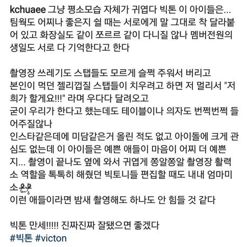 은 2016년 겨울에 데뷔한 빅톤의 허찬이라는 멤버가 이번 단체 팬미팅에서 한 말