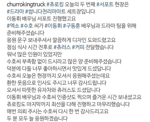 2동휘님 인별에 올라왔는데 준면이 오늘 2동휘님 드라마 촬영장에 가서 응원도 하고 음식차도 불러줬나봐