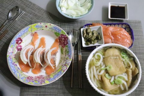 연어초밥, 유부우동