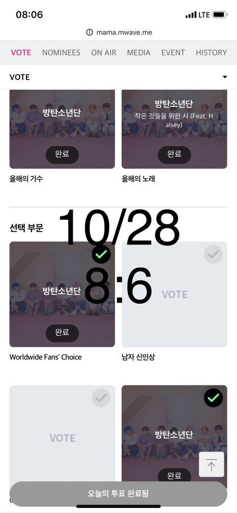 오늘은 콘 없으니 투표에 집중 좀 해주구 어제 콘 간다고 튭 못한 이삐들 중에 아마s는 오후에 리셋이니 어제분량 오전에 하자!