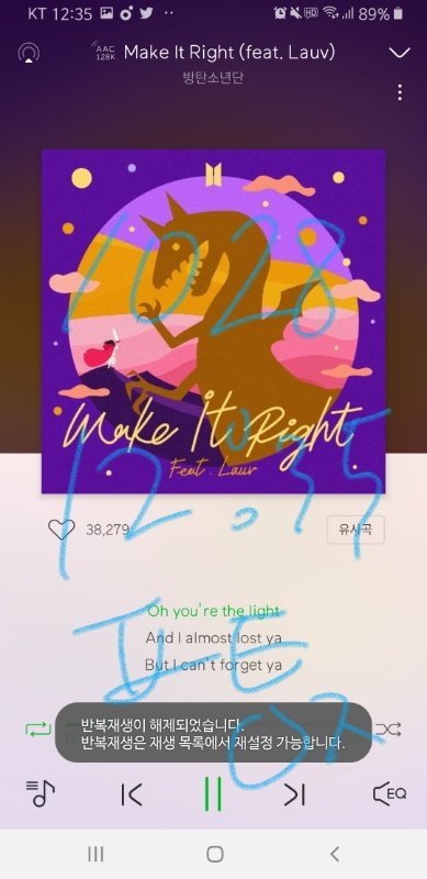 재생중인 곡으로 들어가면 저 반복재생이 꺼져있어