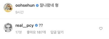 찬열이 빼꼼 나온 훈스타 사진에 댓글ㅋㅋㅋㅋ 또 여린 모르게 사진 올렸어ㅋㅋㅋ
