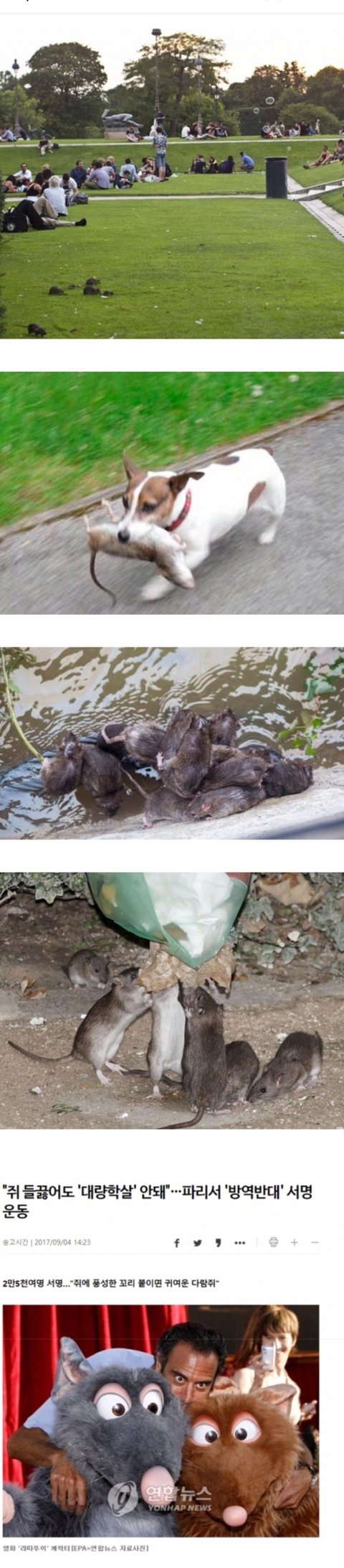 진짜 깜놀함.서양쥐라 그런지 크기도 큼.파리 시내도 나옴.그러나 방역못함.동물단체인지 뭔지서 난리치고 데모함.저러다 중세 흑사병 또 한바탕 돌아야 정신차리지.