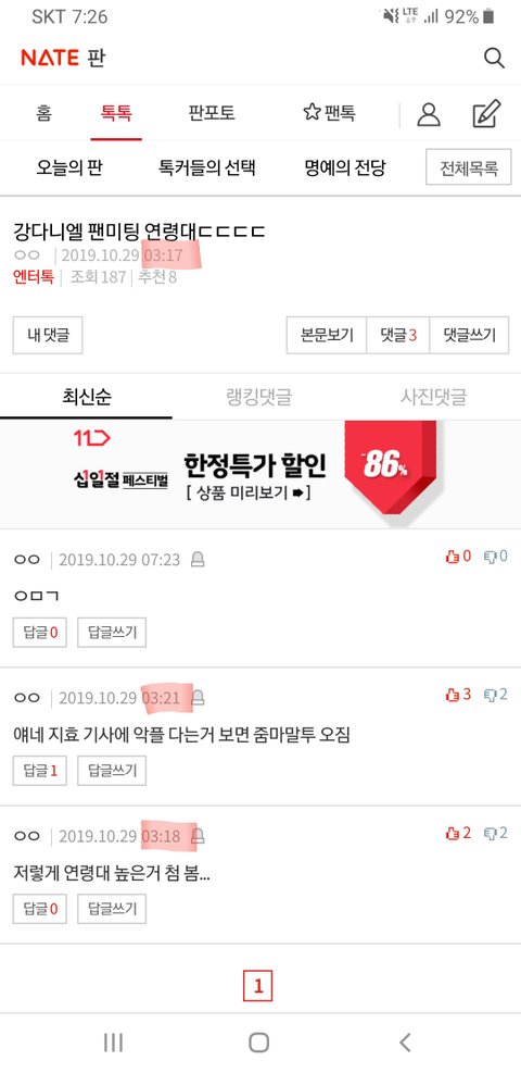 혼자 글 쓰고 댓글도 달고 했나봐ㅋ 글 작성시간이랑 댓글 작성시간 봐ㅋ