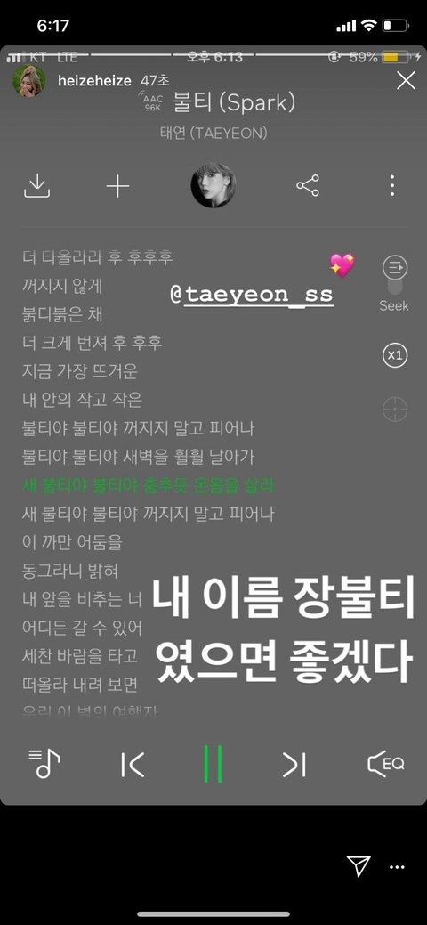 참고로 태연은 ㅁㄹ 안쓰고 다른 뮤직어플 쓰는데,