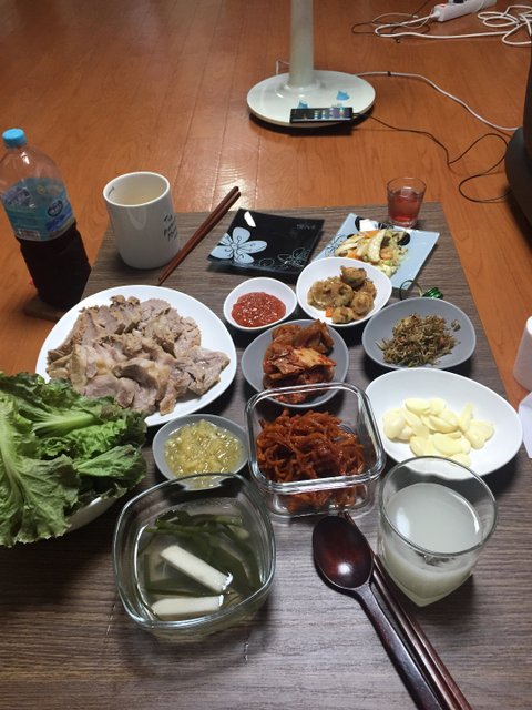 와이프가 막걸리를 먹고싶다고 해서 수육을 삶았어요