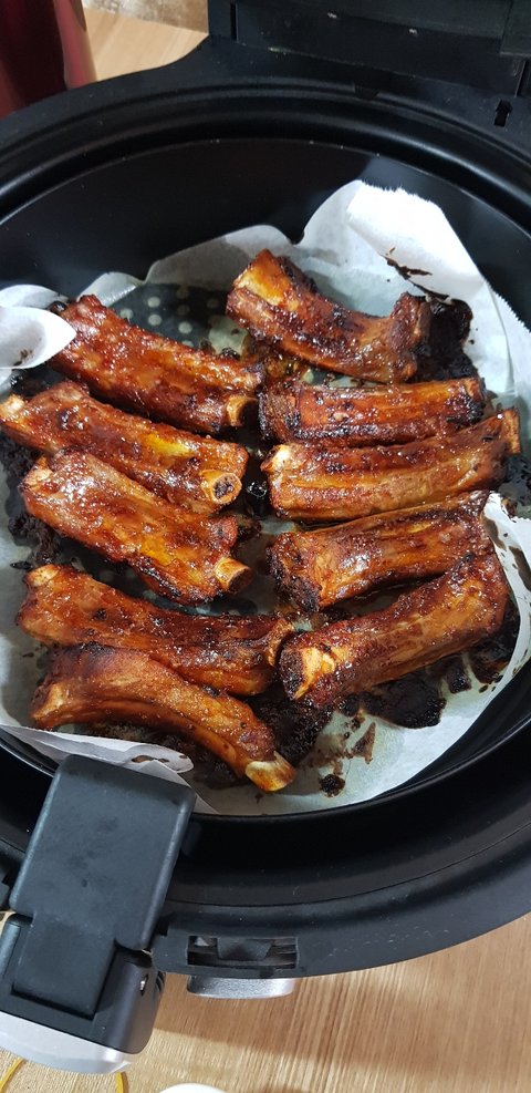 냉장고에 등갈비가 남아있길래 에어프라이 돌렸습니다 ㅋ