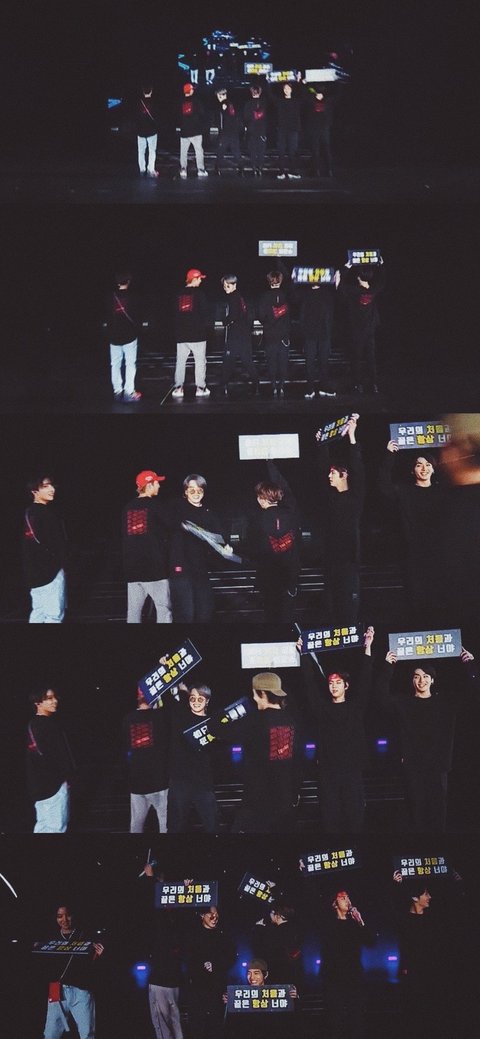 마음이 또 이상하다 슬픈데 기쁘고 맘 아픈데 행복하고 또 하나의 산을 애들과 같이 손 꼬옥 잡고 잘 넘은 기분.. 긴 투어기간동안 우리에게 차마 말못할 애들만의 힘듦이 있었을거고 우리도 애들이 절대 몰랐으면 하는 요 몇달간의 힘들고 화났던 일들이 있었고 그 시간들이 이번 파이널 콘으로 한방에 정리되고 단단한 느낌이라고 할까. 일년을 함께 지내오면서 각성하고 더 단단해지고 코어타게 되는 시기가 연말과 파이널 콘서트인 것 같아. 첫콘을 다녀왔고 지친상황에 애들 얼굴 보자마자 눈물부터 터졌고 단단해 져왔는데 애들도 첫콘 중콘 막콘을 우리와 함께 보내면서 훌훌 털고 그 행복했던 시간과 오늘의 눈물로 더 단단해졌을라 믿어. 우린 또 오늘 이후로 절대 떨어지지 않을 몸과 마음으로 서로가 서로를 그렇게 또 잘 지켜주고 보듬어주는 사이가 되겠지.