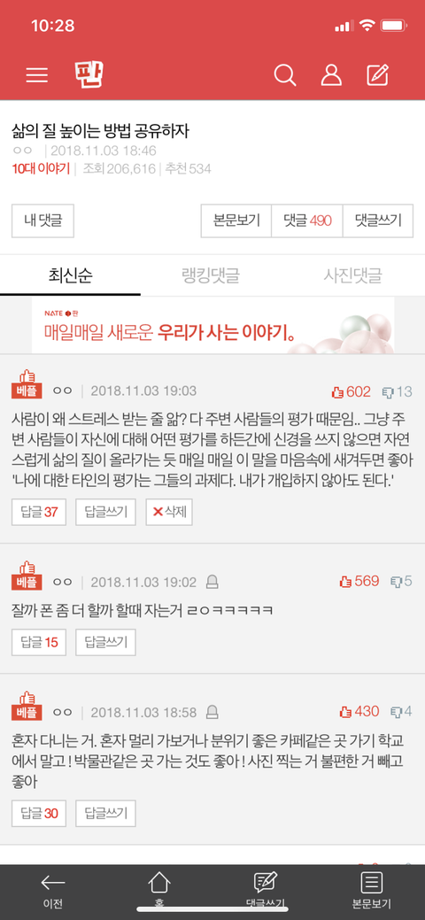 댓글 많은 톡
