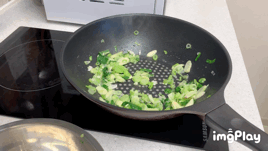 5. 팬에 식용유를 두르고, 편마늘과 파를 넣어 볶아주면서
