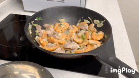 6. 이후 새우를 넣어 볶아주고, 새우가 빨갛게 익으면