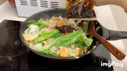 잠시 볶아주면 면이 익으면서 부피가 약간 줄어들어요