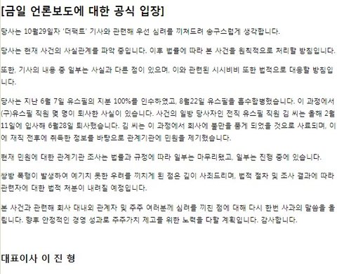 뉴스보도 전까지는 회사차원에서 이 사건을 인지하지 못 했더라도 보도가 된 시점에서는 최소 폭행을 당한 저에게 상태를 확인한다던지 우선 사과부터 하는게 사람의 도리이지 않을까 싶습니다.