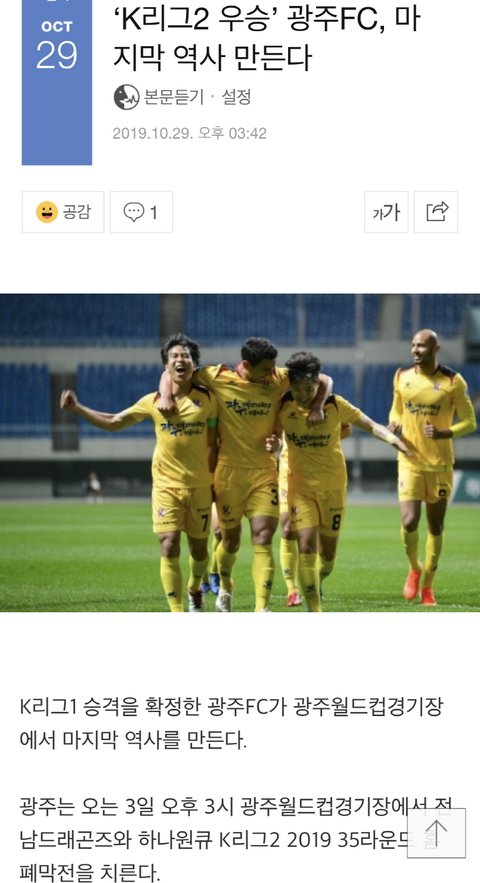 ‘K리그2 우승’ 광주FC, 마지막 역사 만든다
