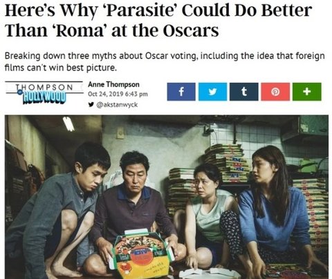 ''기생충'이 오스카에서 '로마'보다 더 잘 해낼 수 있는 이유'라는 기사를 올림
