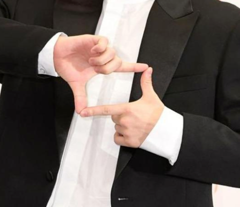 얼굴에 손을 갖다대고 눈을 중심으로 브이자를 그리는 것