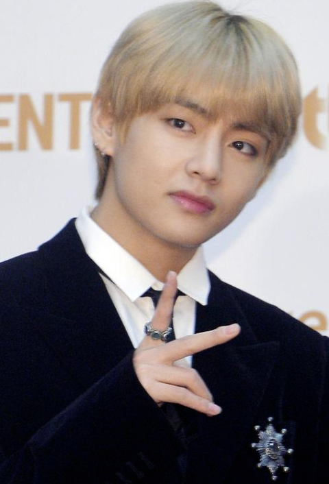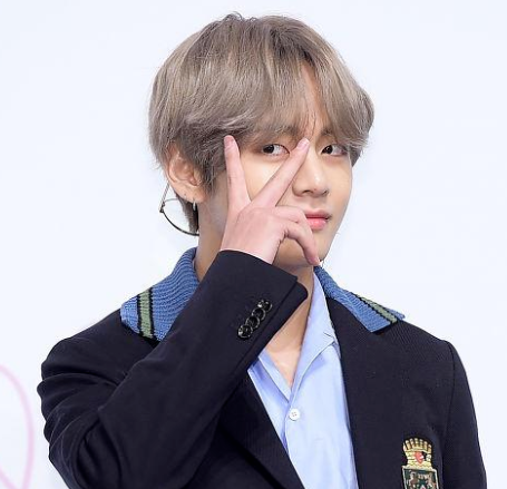 뷔(V)라는 이름에 맞게 손으로 브이자를 그리는 포즈가 있음