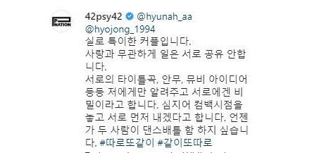 올해 초, 현아와 이던은 싸이 소속사에 들어갔고