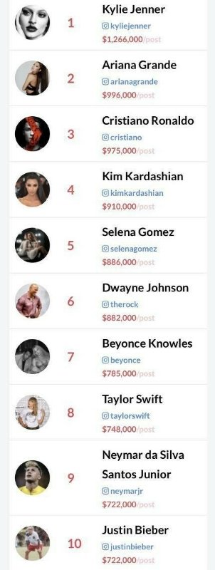 1위 카일리 제너 (한 포스트 당 약 15억 원)