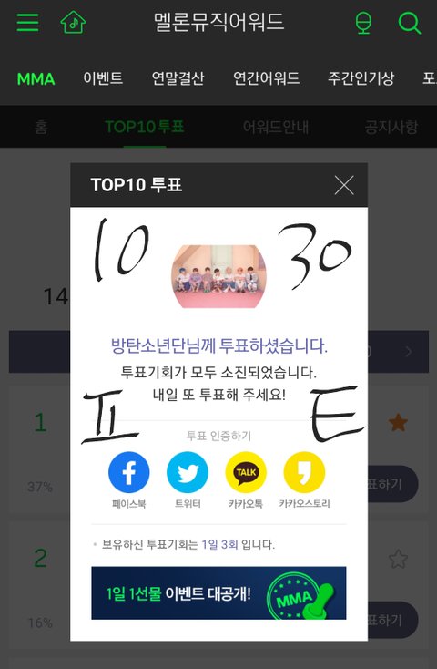 매일 투표하고 이벤트도 응모 하는거 잊지마아~