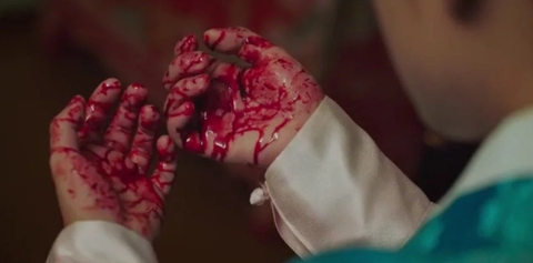 피를 뒤집어 쓴 영수는 멘탈 나가고 오줌까지 지림