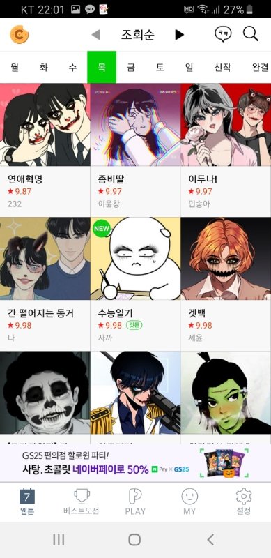웹툰 보려고 들어가니까 썸네일봐 ㅋㅋㅋ 할로윈기념이라고 바뀐건가봄ㅋㅋㅋㅋ