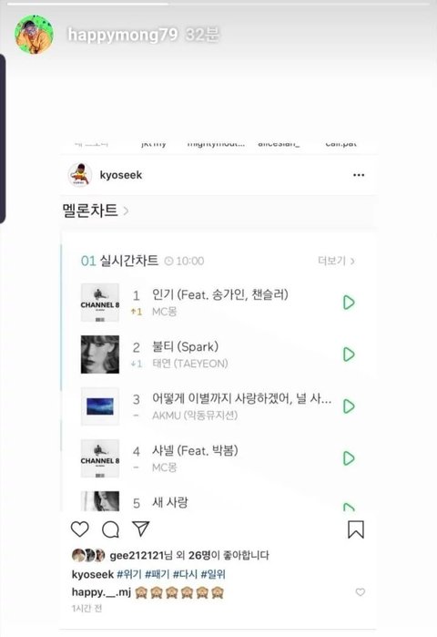 악뮤 찐 대중픽 멜론 탑100 1위ㄷㄷ