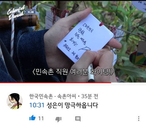 컬러풀다니엘5화에 민속촌 직원분들 댓글단거 봄?