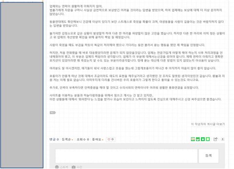 사이트를 이용하는 분들과 하늘다람쥐들을 위해서 힘쓰고 계시는 건 알고 있지만..이런 상황들에 대해서는 ‘회피한다’는 느낌을 받거나 모습을 보인다고 느껴지지 않도록 진심으로 대해주시고 신경 써주셨으면 좋겠습니다.