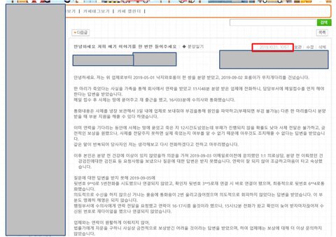 안녕하세요. 해당업체 카페에 게시글을 올리니 삭제되어, 답답한 마음에 제일 활성화되어있는 판에 업로드해봅니다.