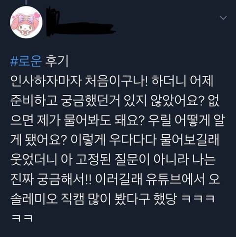 ㅋㅋㅋㅋㅋㅋㅋㅋ로운이 말하는데 팬매가 넘어가실게요 한거 ㅋㅋㅋㅋㅋㅋ