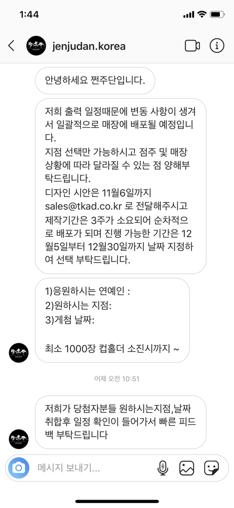제가 인스타에서 쩐쭈단이라는 데에서 컵홀더 이벤트 하길래 신청했는데 당첨이 됐어요. 시안 디자인을 6일까지 보내라는데 제가 이런거 1도 모르거든요. 어떻게 손재주 좋은 시즈니의 도움을 받을 방법이 있을까요?
