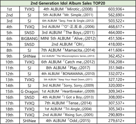 19위 동방신기 정규 2집 29만장(대표곡 라이징썬)