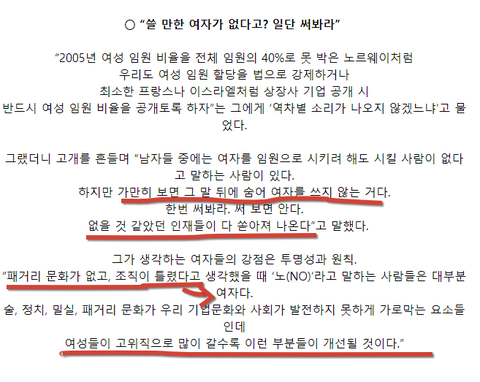 '기업이 여자를 안뽑는 진실' 이라며 mcm 사장이