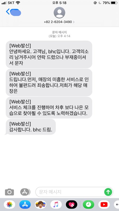 일단 bhc에서 연락왔었어! 사진 첨부할게