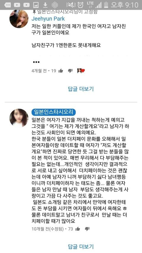 남자가 내야지라는 마인드 가진 나라들 마초문화 개심한거 모르나봄?