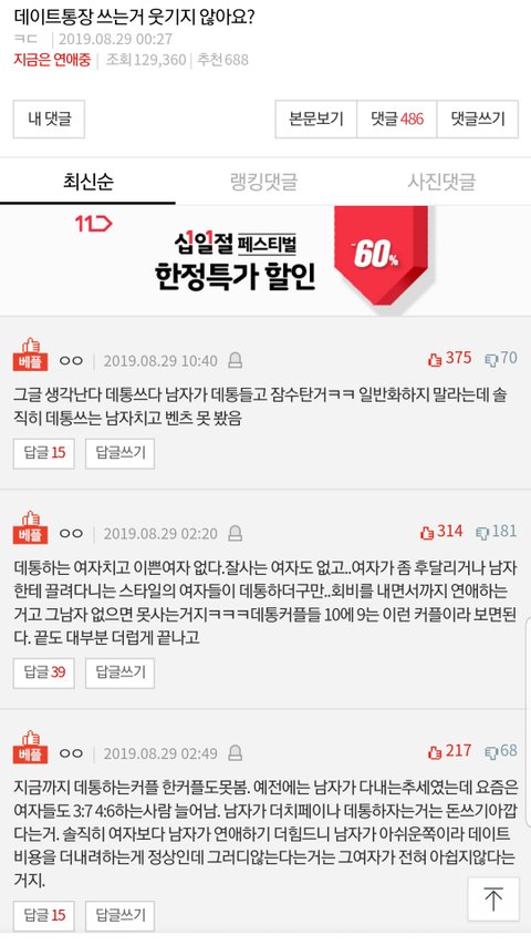 정말 데이트 통장에 대해서 안좋게들 보시나요?