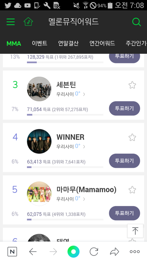 정말 잘만 하면 3위까지도 갈 수 있을 것 같아!! 잊지 말구 투표! 하루에 3번!!