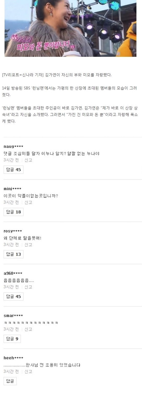 악플이 없다는 유일한 여자 연예인