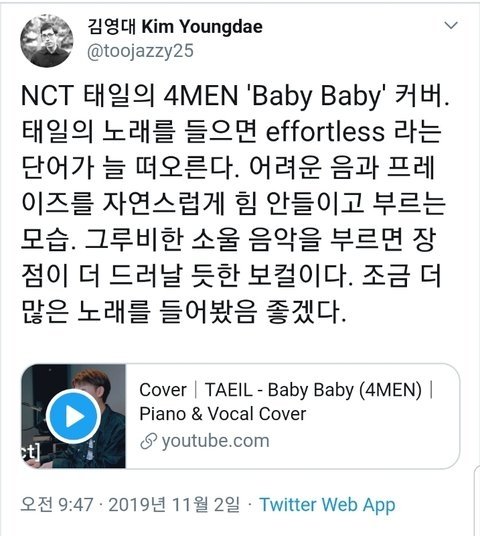 여기서도 태일이 그루비한 곡 ㅅㅊ하고 그러지않았어?ㅋㅋㅋ 되게 날카로운것같아 평소에 준희들 글 읽는거 재밌어
