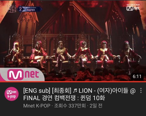 퀸덤 파이널에서 (여자)아이들 LION 무대 다들 봤지?